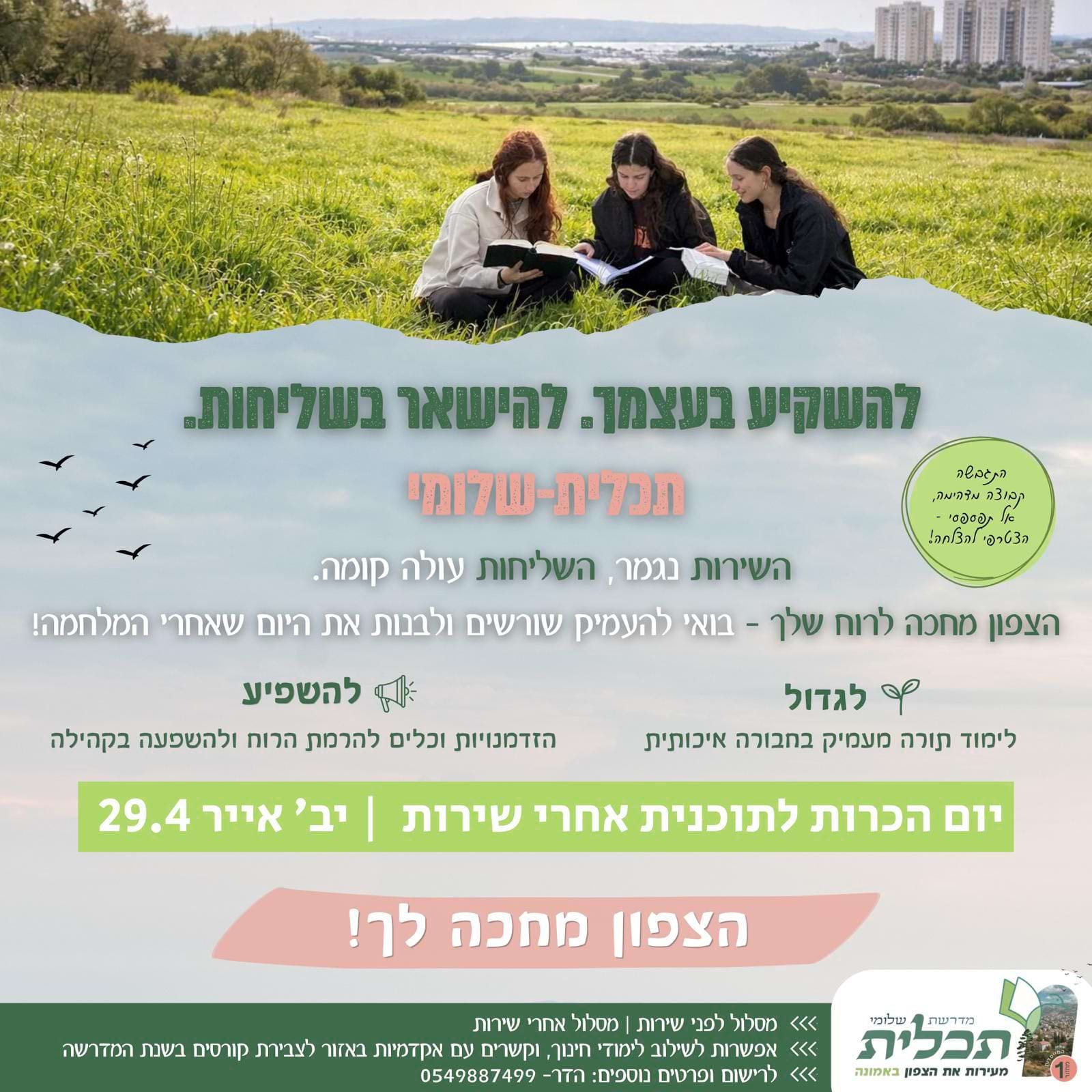 מדרשת תכלית מתרחבת ועולה צפונה ופותחת שלוחה חדשה בעיירה שלומי! 🍃