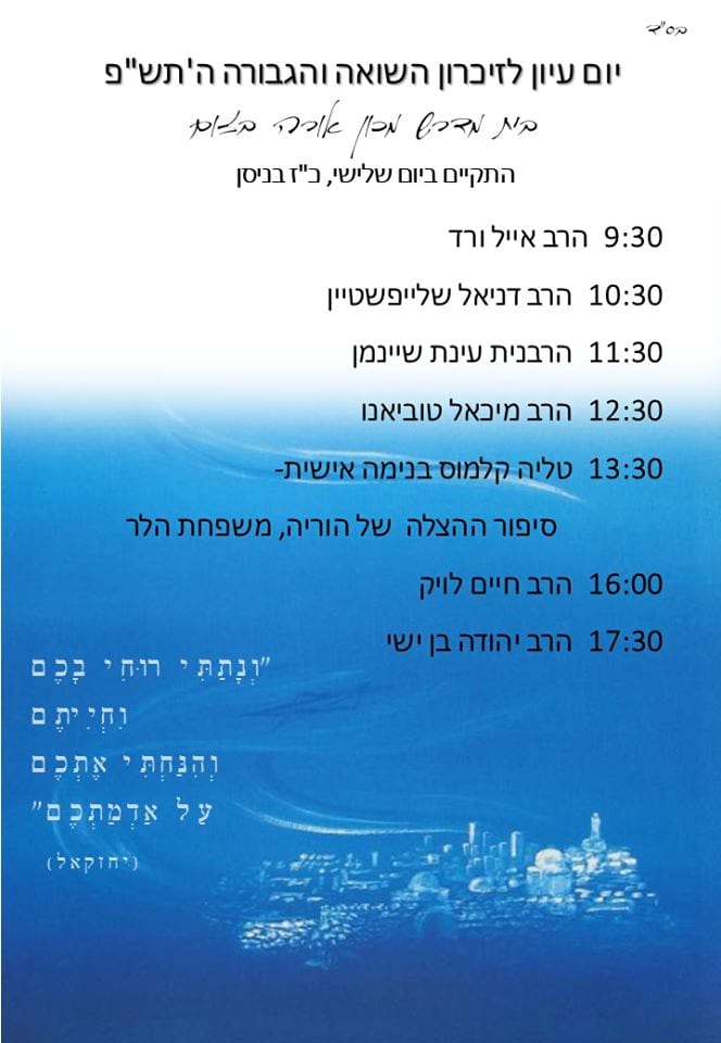 יום עיון ביום הזיכרון לשואה ולגבורה במכון אורה