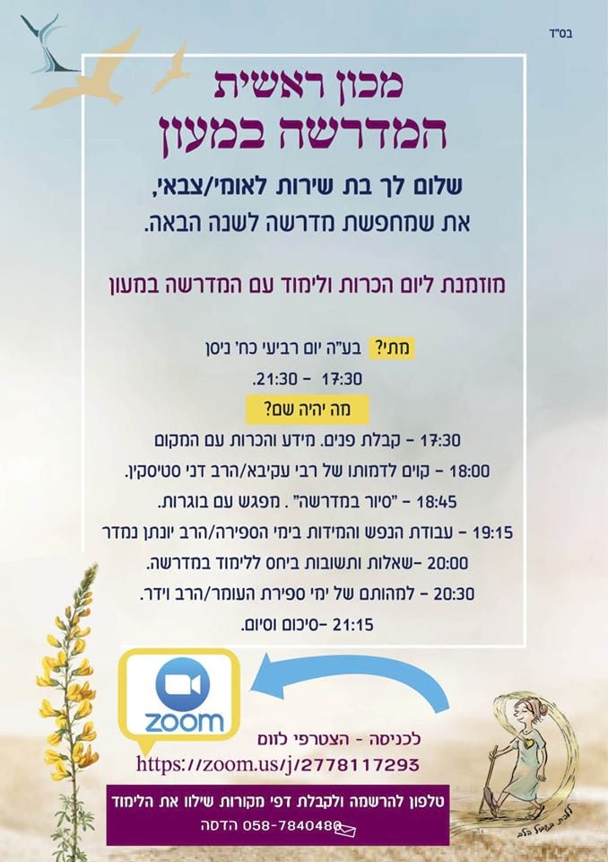 יום פתוח וירטואלי במכון ראשית-המדרשה במעון