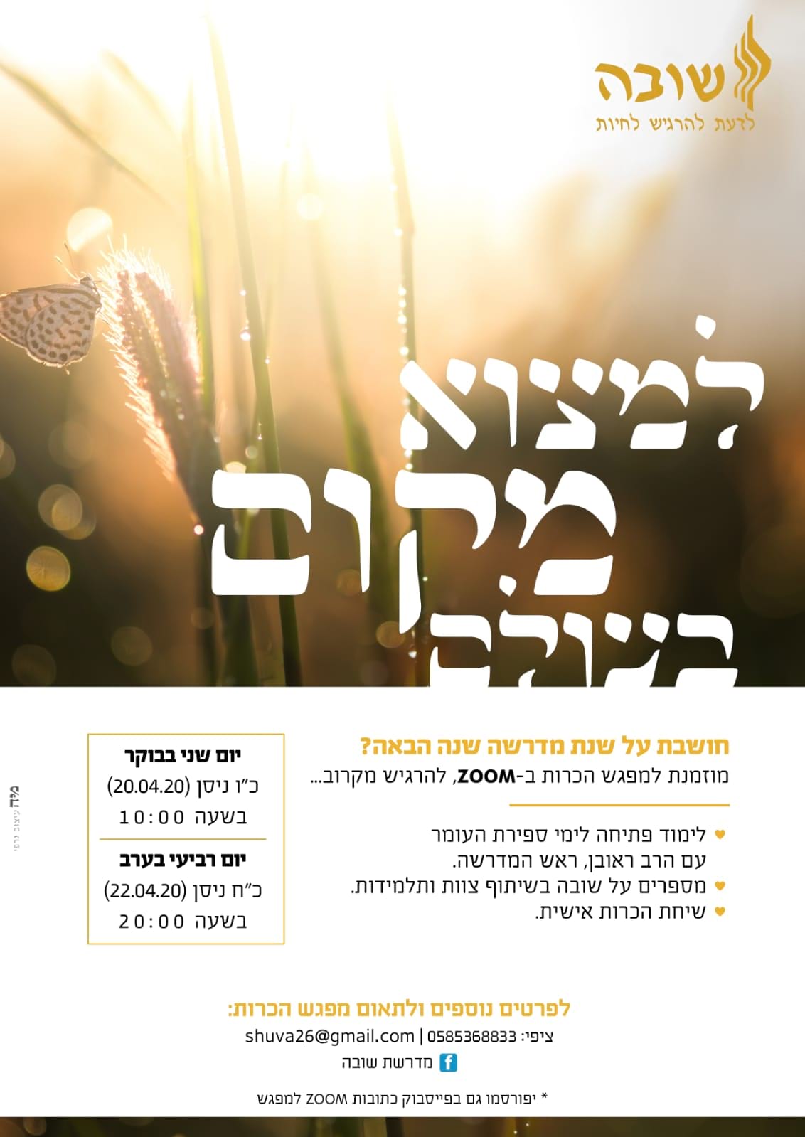 ימים פתוחים וירטואליים בזום במדרשת שובה- מרחוק אבל מקרוב
