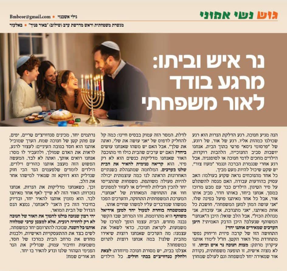 נר איש וביתו: מרגע בודד לאור משפחתי | הרבנית גילי אשכנזי