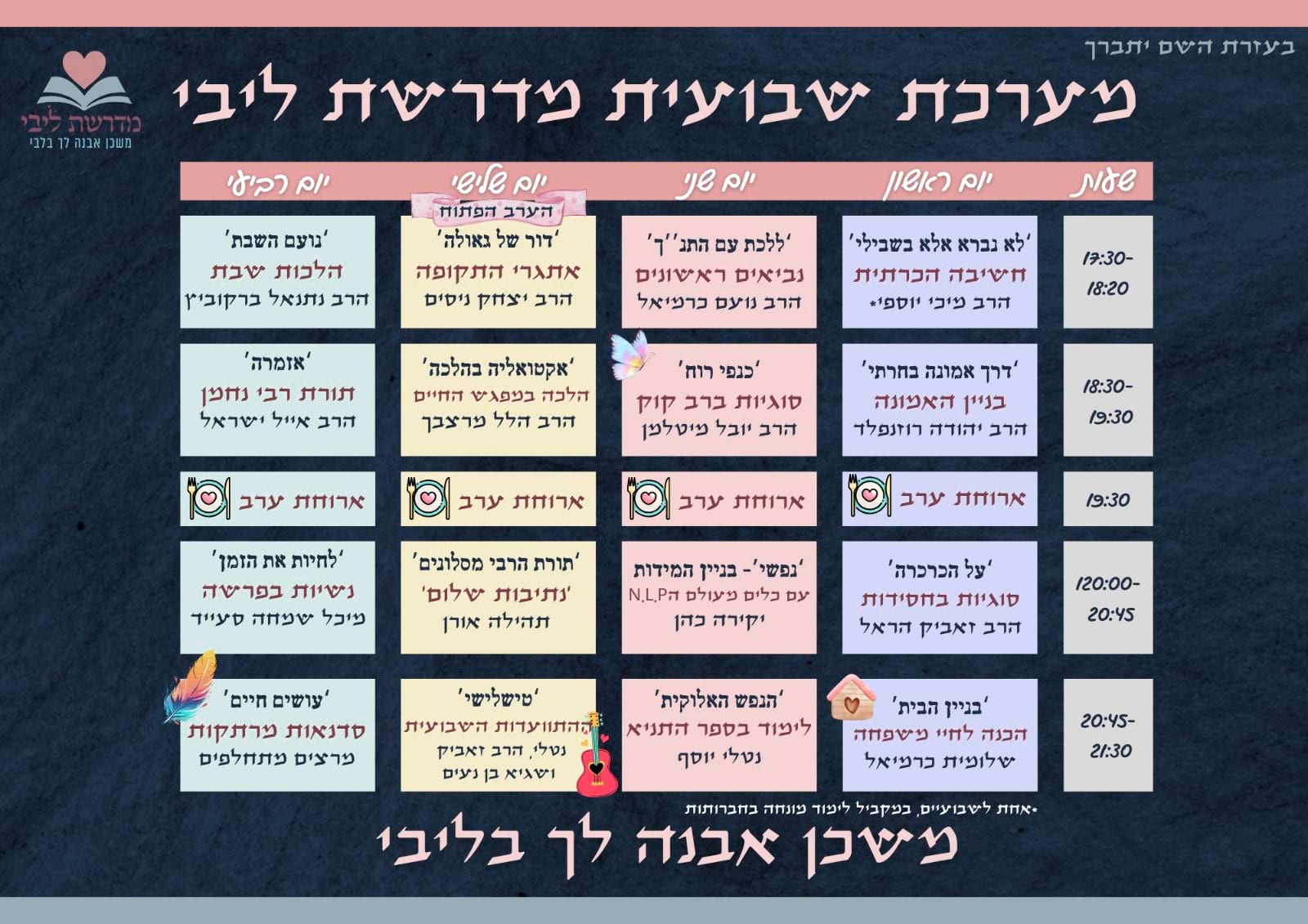 מדרשת "ליבי" היא מדרשת שילוב – בית מדרש חם לבנות שמחפשות להתקדם בעבודת ה'.